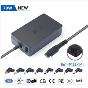 Product Name: 70W Universal Adapter Model: IKA50-20V3.25A Input Voltage Range: 100V-240V Output: 20V 3.25A Size:86mm x 49mm x 22xmm Notes: UL/EN/ICE-60950