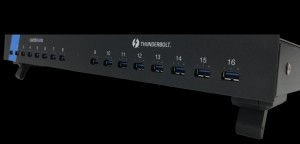 ThunderSync3 (order code: TS16-RM-TB3-USB3) is a very high speed data transfer and charging product designed to allow 16 USB2.0 or USB3.0 devices to connect to a Thunderbolt 3 host computer without the bottleneck experienced when using traditional USB hubs.