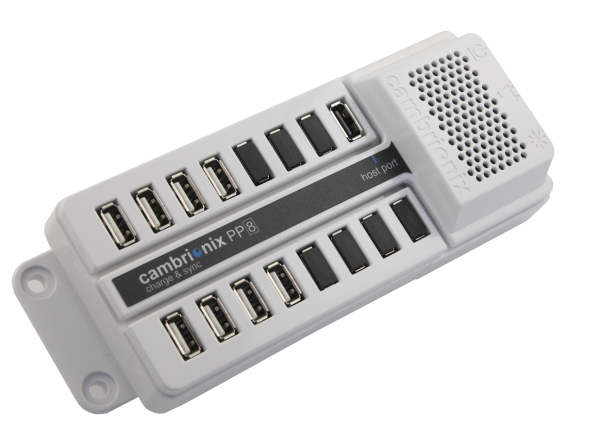 A UNIVERSAL AND RELIABLE 8 PORT CHARGE AND DATA SYNC USB HUB THAT IS DESIGNED AND MANUFACTURED IN THE UK. THIS INTELLIGENT USB HUB USES THE CAMBRIONIX VERY INTELLIGENT CHARGING PROTOCOL (VIC) TO PROVIDE UP TO 2.1AMPS TO EVERY PORT (DEVICE DEPENDANT).