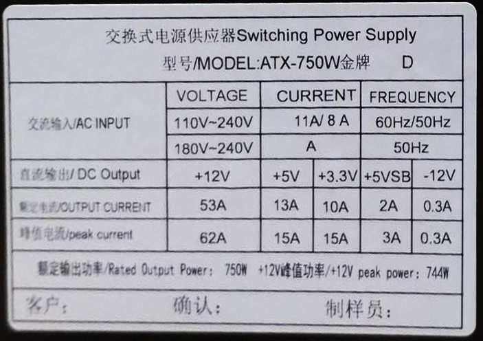 (GOLD) Switching Power Supply ATX 750W